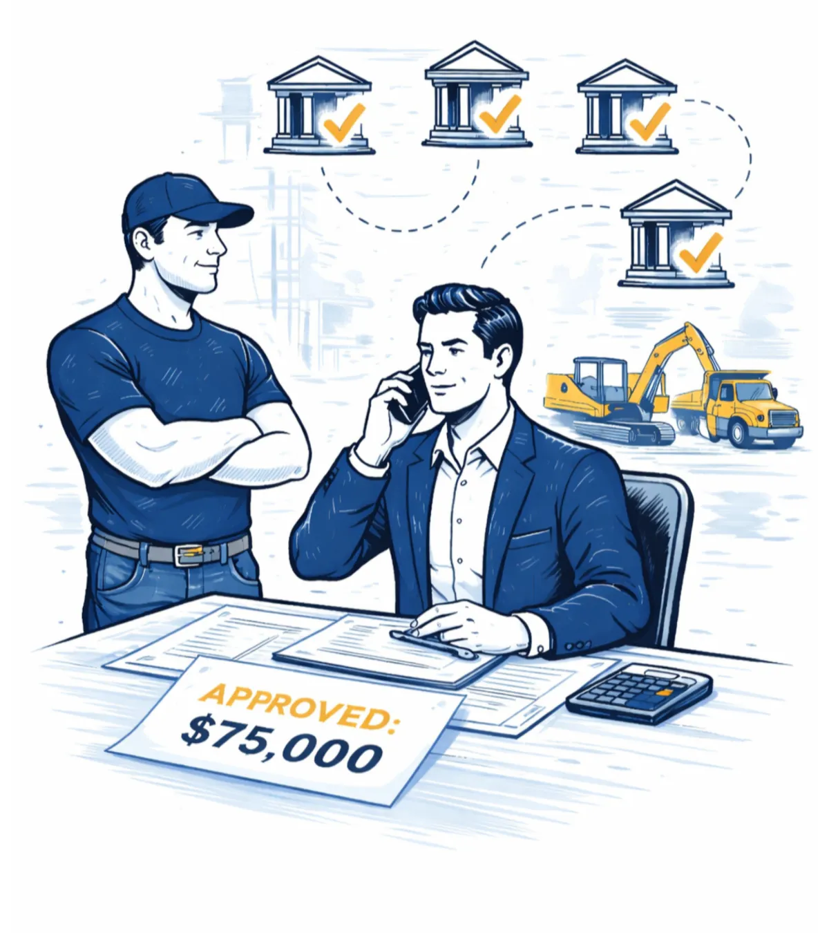 We connect you with equipment lenders who specialize in construction and blue-collar businesses. Each lender sets their own rates, fees, and terms.